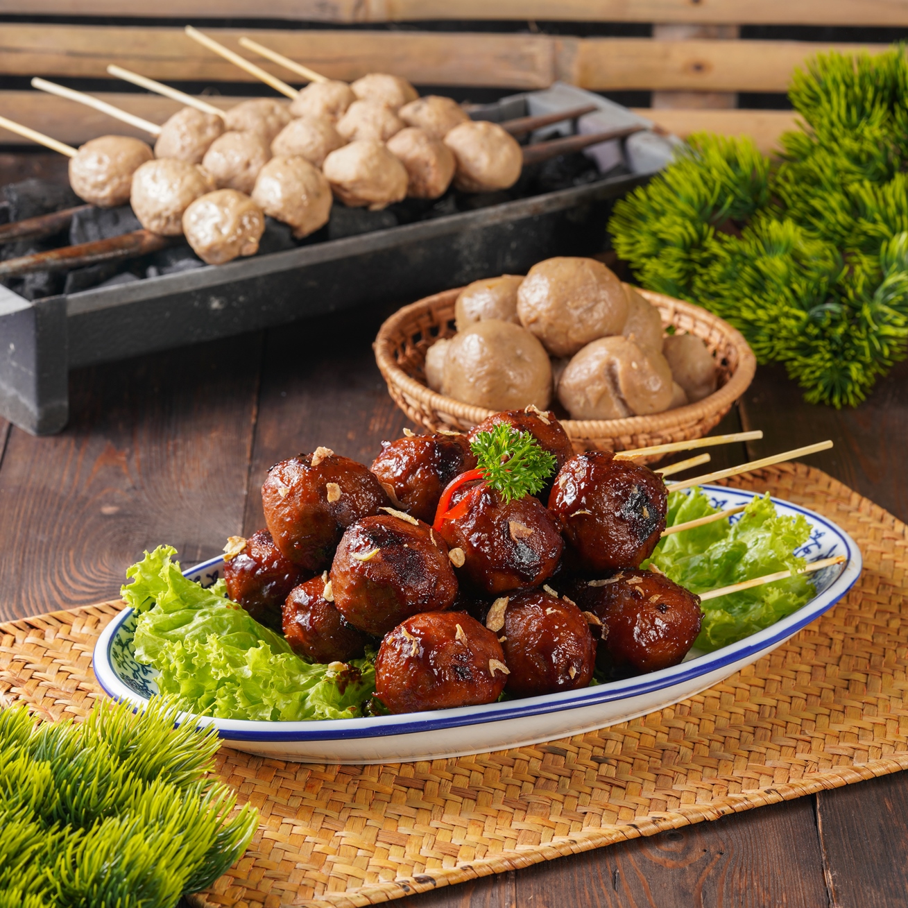 1. Make skewers of meatballs. Put 3 meatballs for 1 skewer.